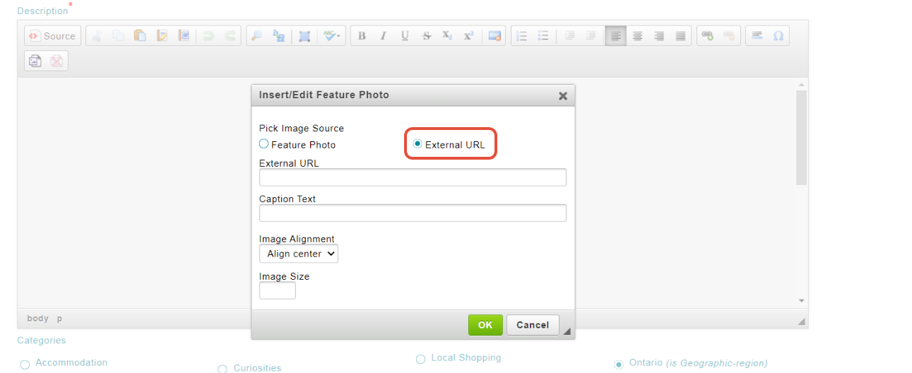 If you are looking to add an image from an external source, select “External URL” and add the link that hosts your image.
