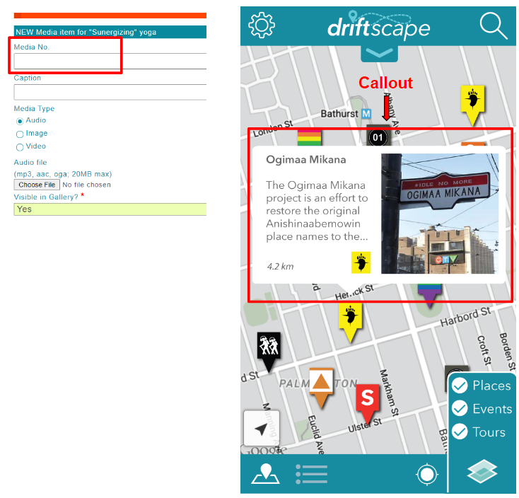 Please note: The first Image that appears in the Media List will always appear in the POI callout, even if it has been hidden from the gallery. For correct formatting, ensure that the main image you want a user to see is the lowest numbered media item associated with the POI.