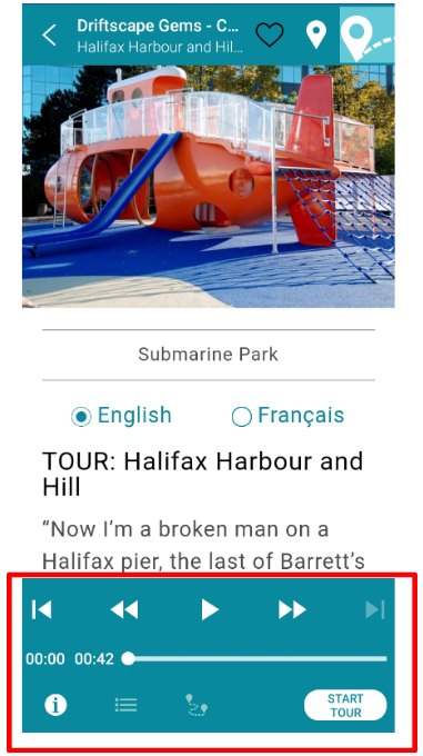 Audio files will be displayed in an embedded audio player at the bottom of the screen when your POI is viewed.