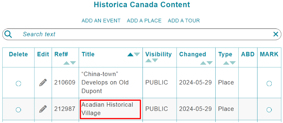Log into the CMS using your credentials and click on “Org Content”...here you will see a list of all your current POIs. Click on the POI you would like to copy under the Title column to open up the POI (do not click on the ‘pencil icon’ under the Edit column):