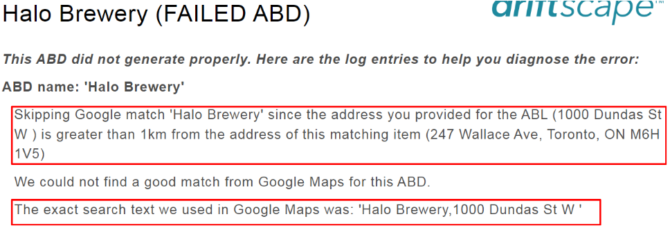 If you are certain the AiListing should work and is not, contact your Driftscape support representative, providing the CMS URL to the Failed AiListing for review.
